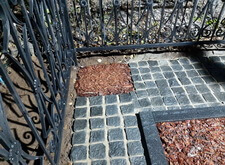 Тем временем мы изготовили табличку, закрывающую лицевую сторону надгробья, а также православный крест, венчающий памятник. Установка этих элементов завершила реставрацию памятника и мы взялись за укладку гранитной брусчатки, оставив в одном из углов участка место под квадратную клумбу. Брусчатку замыли водой и оставили высыхать, в цветник же насыпали мульчу. Окончание работ на данном месте захоронения происходило в тёмное время суток, так как для заказчика срочность благоустройства была одним из решающих критериев при выборе мастеров.